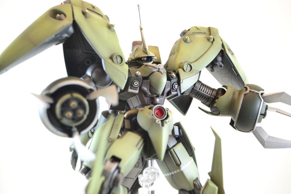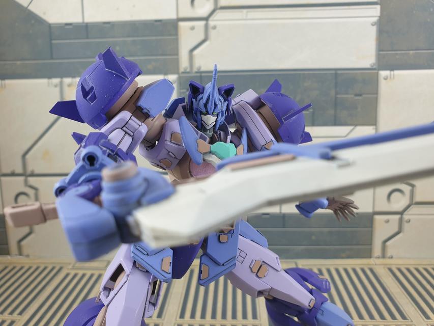 The idea for this kit was a Sukeban girl gang boss kinda vibe, with the oversized sword balanced against the kitty ears from the 00Q Shia. I changed the blade antenna to a Zeonic type one for an oni horn kinda look though. No idea if Ogre from GBD has a stereotypical tough big sister, but if he does I imagine her using something like this.