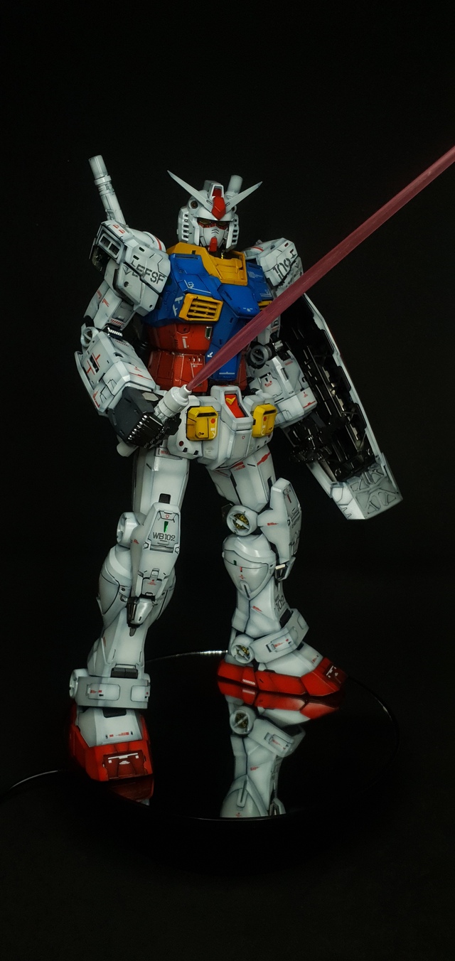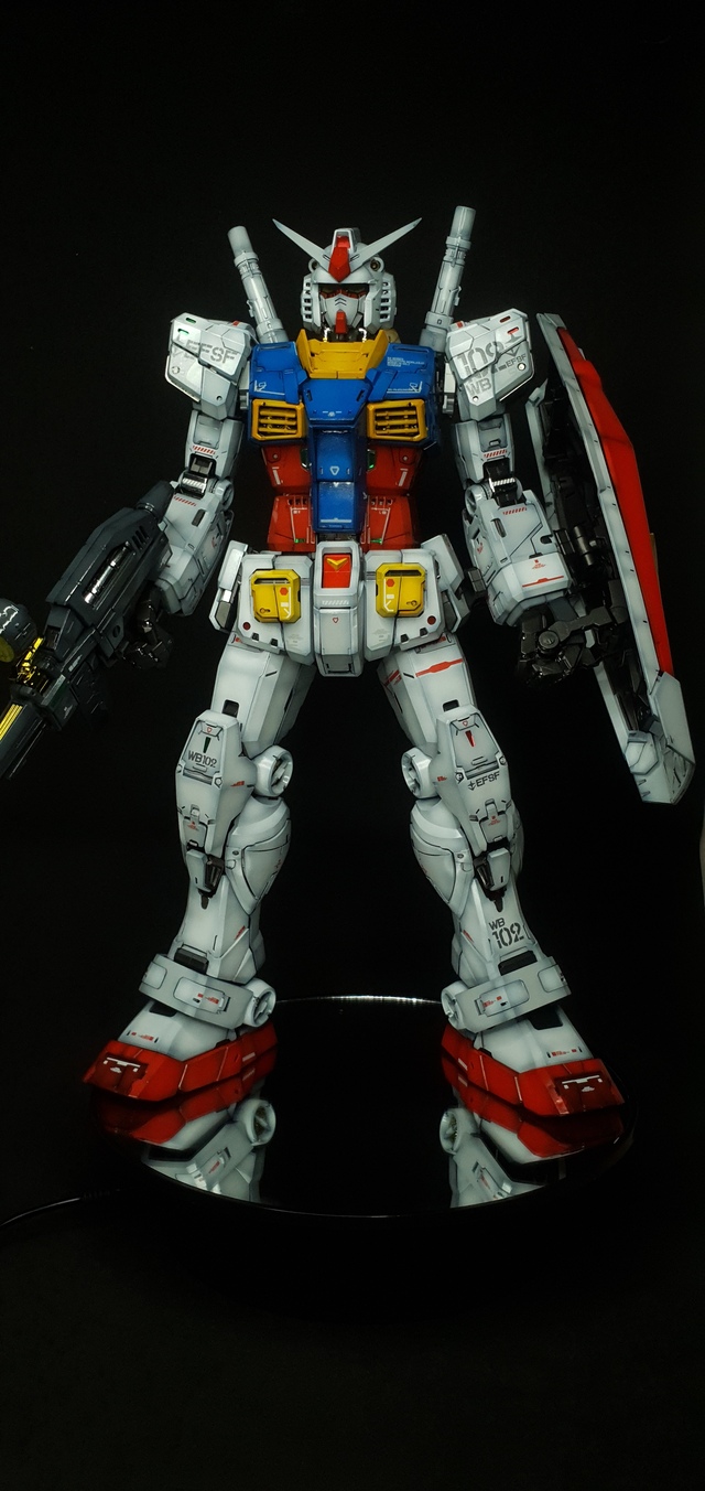 Perfect Grade Unleashed RX 78-2 conpleted. Took awhile to paint, and decal, as this is one massive kit with an insane number of parts. Kept it glossy even with the shading on the paint job, as I haven’t seen a glossy pre-shaded version of this from anyone. Almost always flat or satin coated finish for the shaded customs. All inner frame was metallic and glossy, but did not topccoat to contrast the shiny armor. replaced the black colored parts to dark grey with lighter shaded highlights.