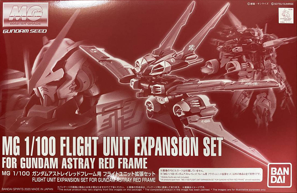 P-Bandai exclusive accessory kit to convert MG MBF-P02 Gundam Astray Red Frame into MBF-P02 Gundam Astray Red Frame Flight Unit. Includes water slide decal sheet.