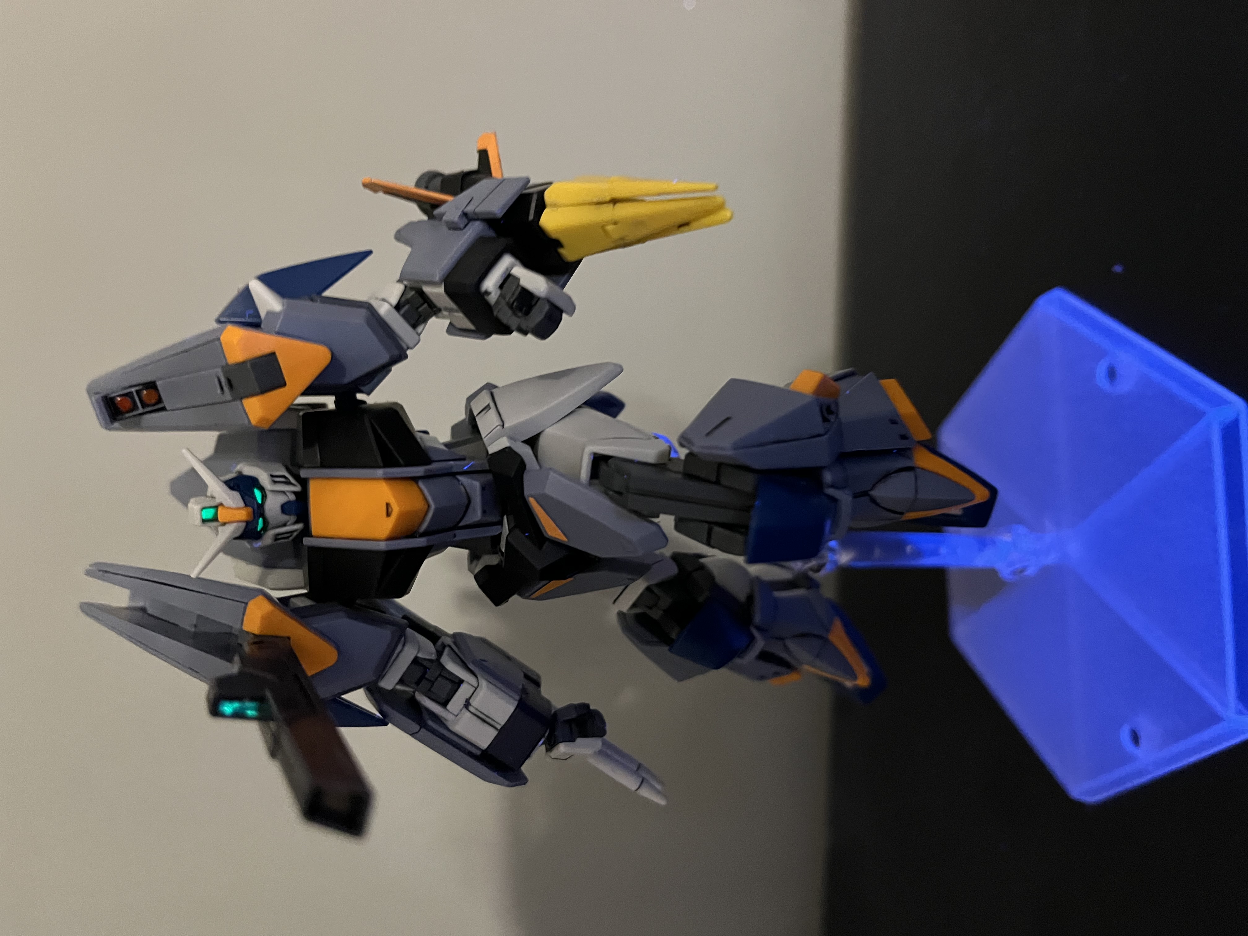 Redesign of HGSEED-02 with improved articulation and proportions with different Assault Shroud. Removal of Assault Shroud reveals GAT-X102 Duel Gundam. Includes clear display base to pose Gleipnir II.