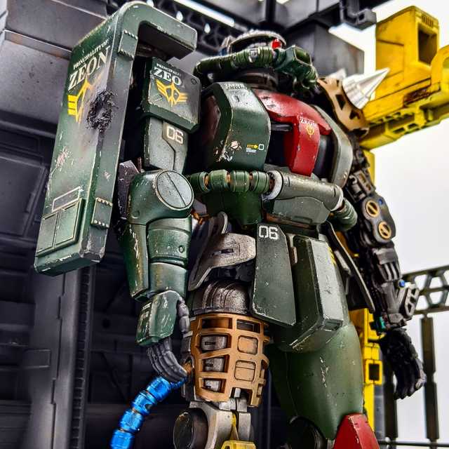 At first I was gonna keep it clean, but then I thought “Maybe light weathering would be the way to go. Also add a pinup girl” Because that’s what I’d put on my Zaku if I piloted one BTW added an LED to the head.