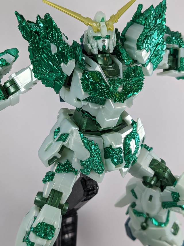 When planning this paint job, I initially was going to mirror the standard God Gundam hyper mode with gold main body, green sensors and the foot to be a translucence red/orange.
