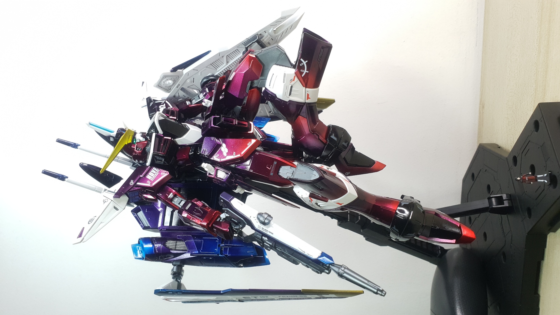 Uses the I and J plate runners of MG-192. Includes BA-13 Action Base 1, Action Base 1 adapters for the Gundam and Fatum-00 unit, and Athrun Zala figurine. Uses entirely polystyrene.