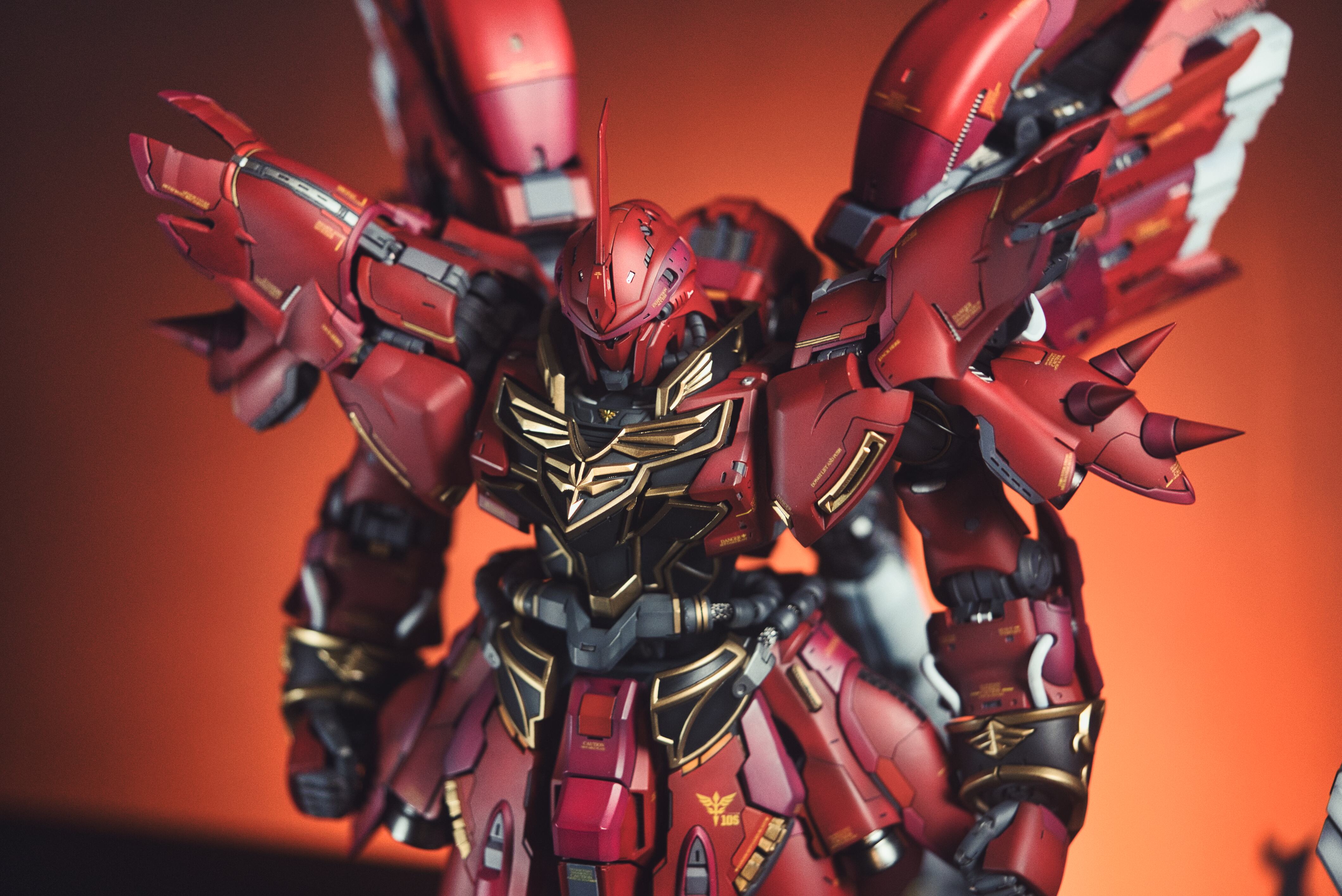 Fully transformable from Unicorn Mode to Destroy Mode and kit-exclusive Destroy Mode Unchained. V-fin halves use internal magnets to connect in Unicorn Mode. Includes custom display base with weapon storage ports and a Banagher Links figurine.