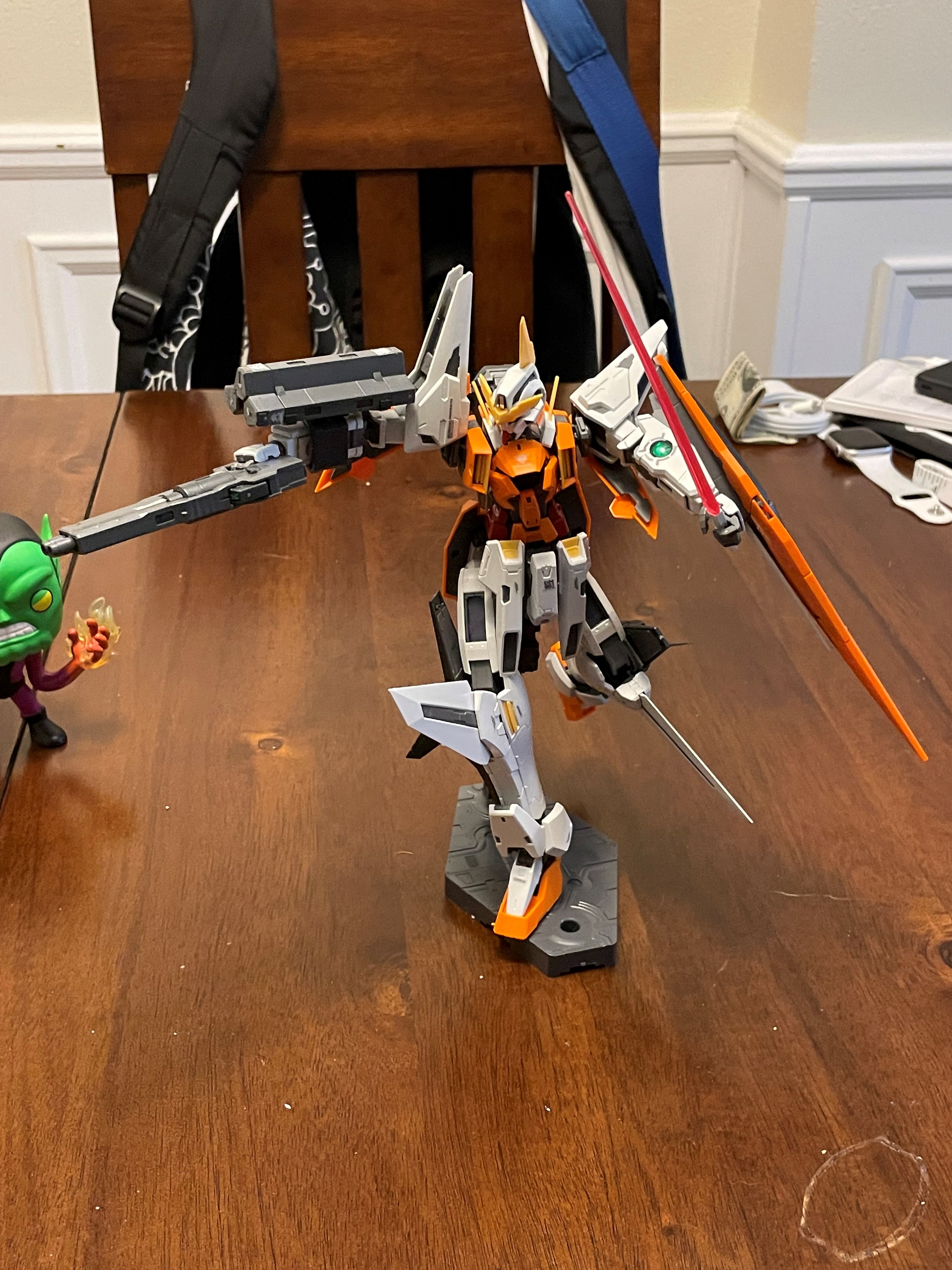 Includes two GN Hand Missile Units and Allelujah Haptism figurine. GN Drive accommodates two Gunpla LED Units (sold separately). Fully transformable kit.