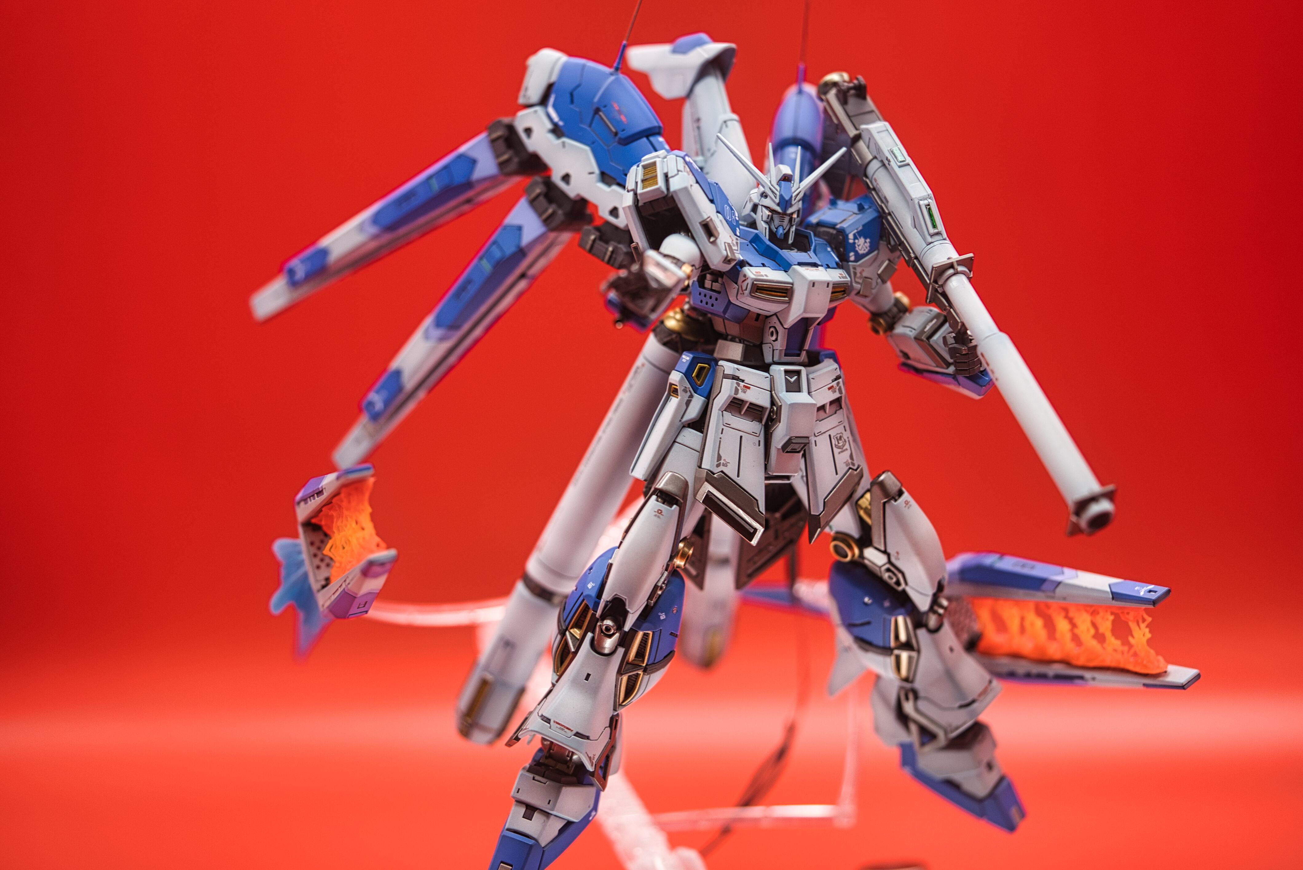 Uses the B and E plate runners of RG-32. Hyper Mega Bazooka Launcher and Fin Funnel effect parts are sold separately as P-Bandai exclusive accessory kits.