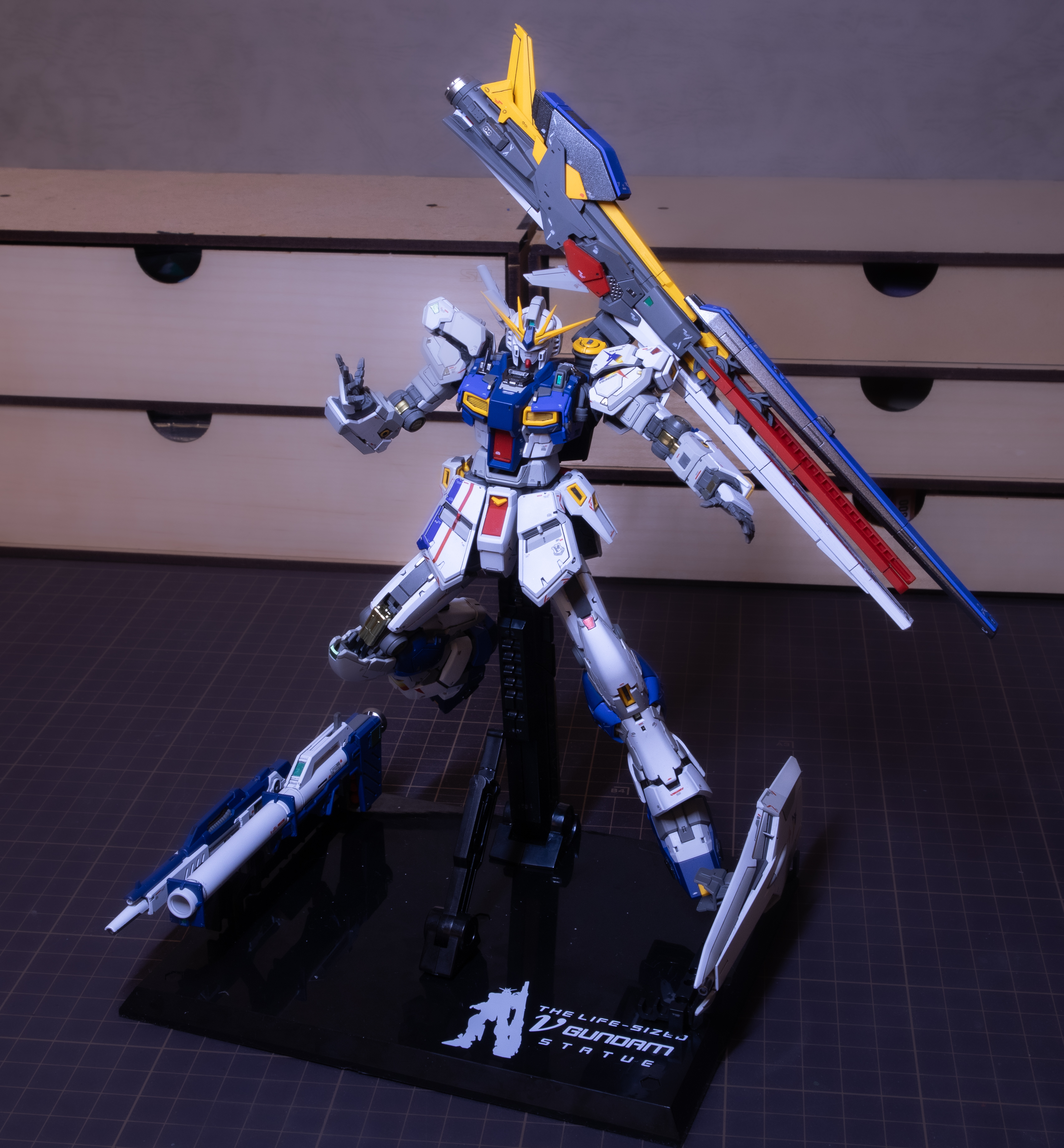 Gundam Side-F and The Gundam Base exclusive parts and color variant of RG-32 with new parts to replicate the Life-Sized RX-93ff ν Gundam statue. Uses duplicate F and K plate runners for color accuracy. Includes water slide decal sheet for Amuro Ray's personal marking.